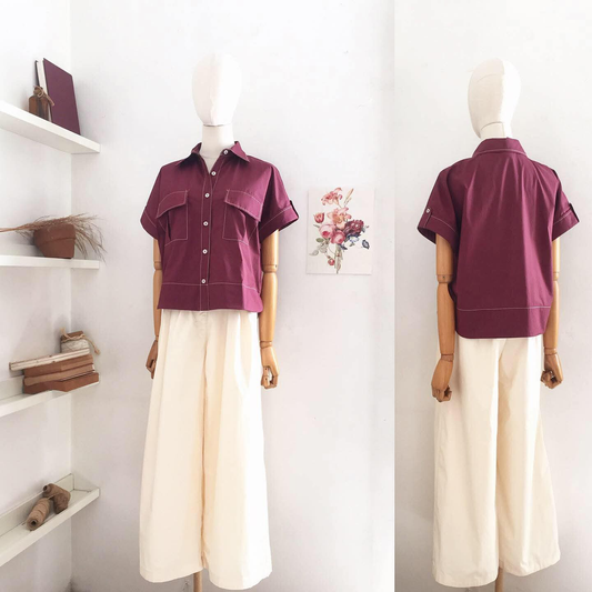 Bertha Linen Twill + Cotton Lycra Top