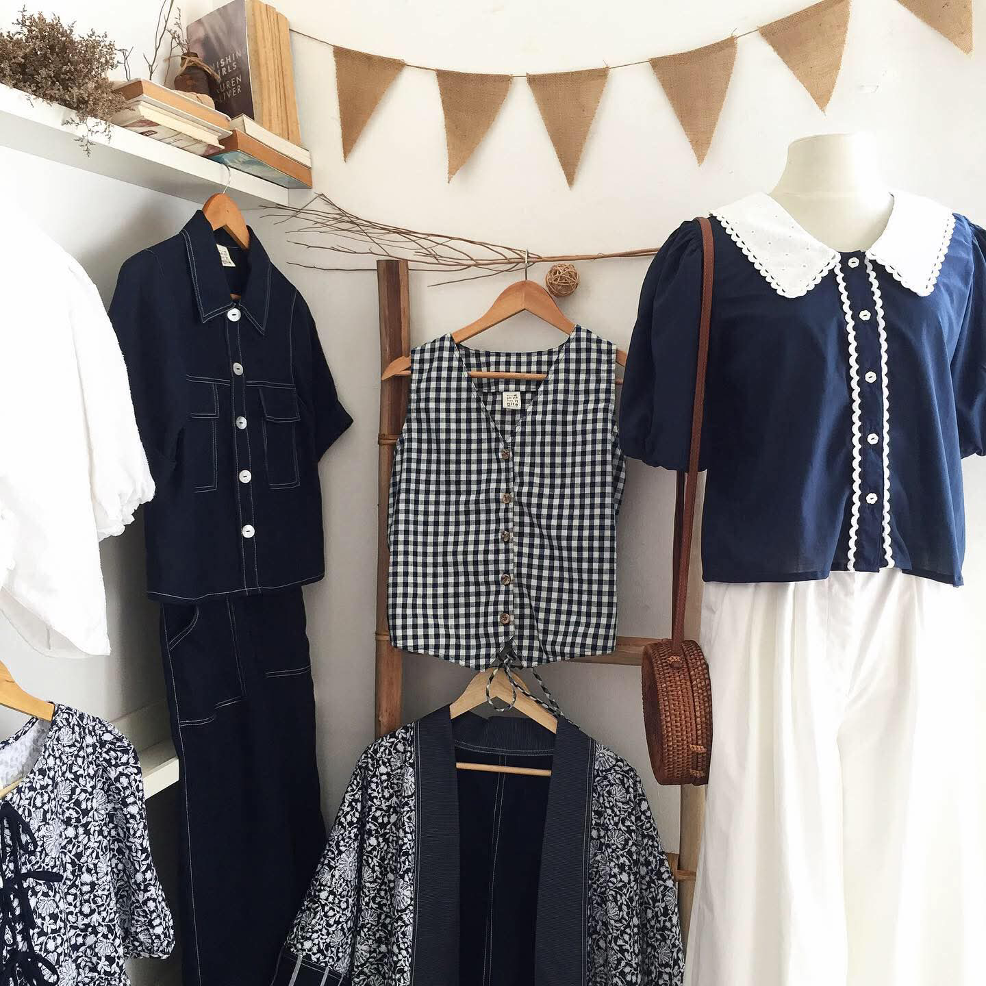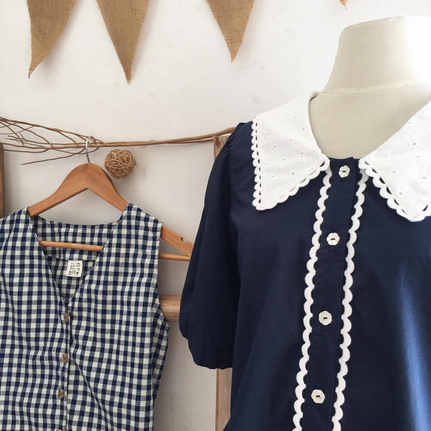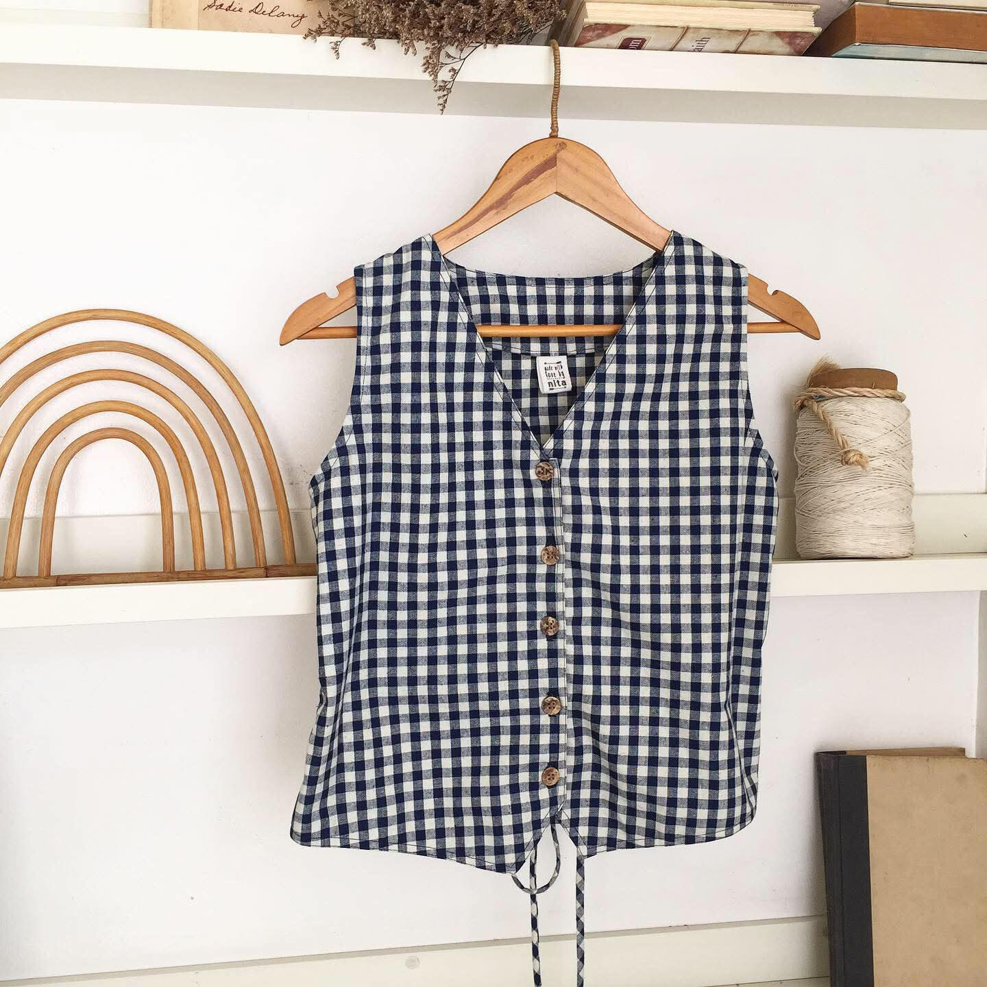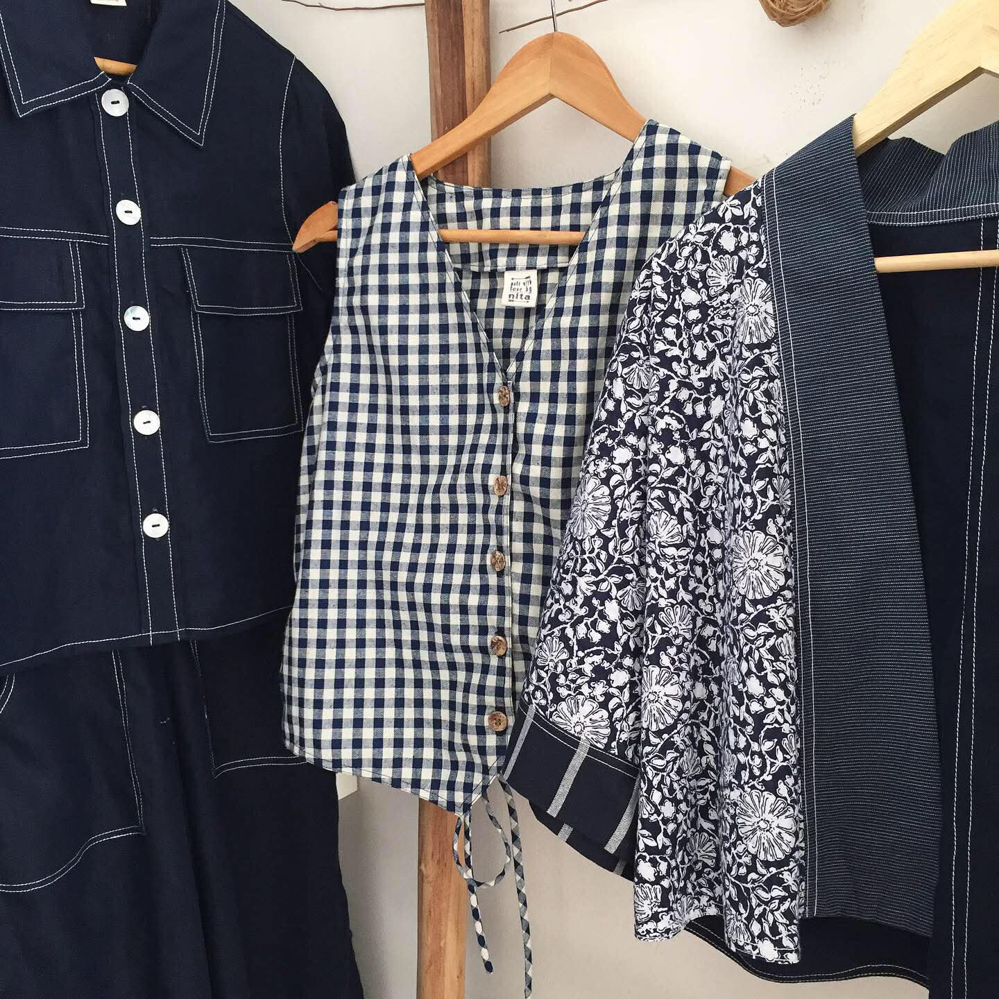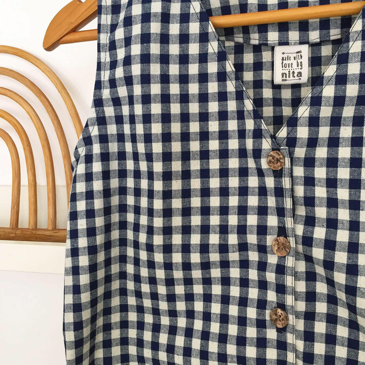 • Medium weight cotton in midnight blue / off-white gingham