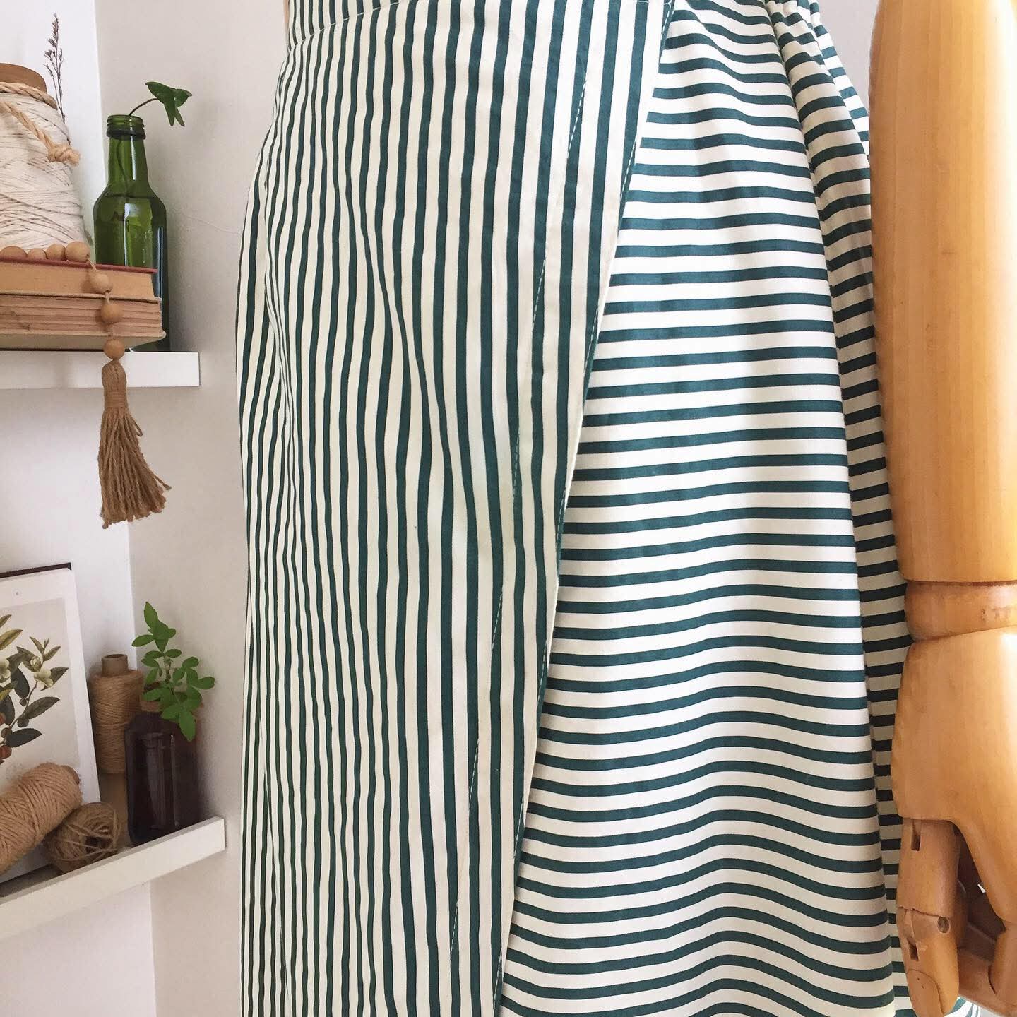 • Soft twill in green / off-white stripes