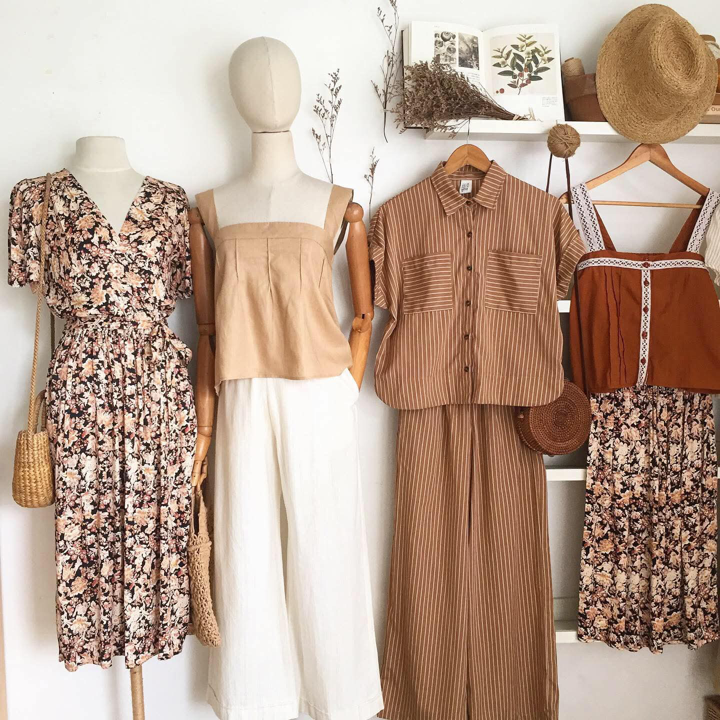 • Linen in beige pinstripes
