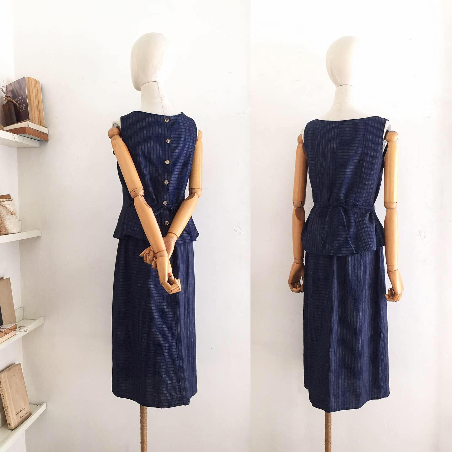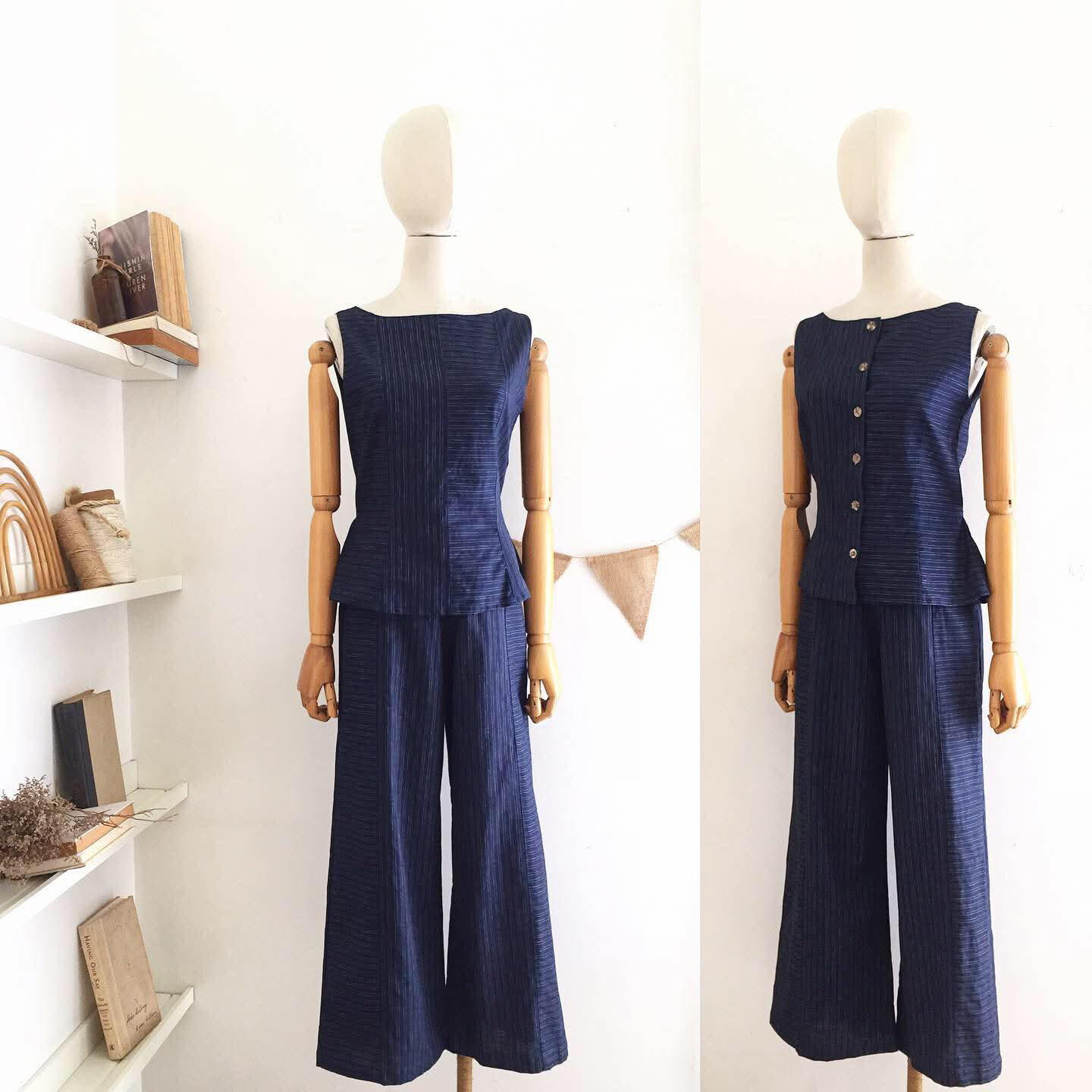 • Linen blend in midnight blue pinstripes