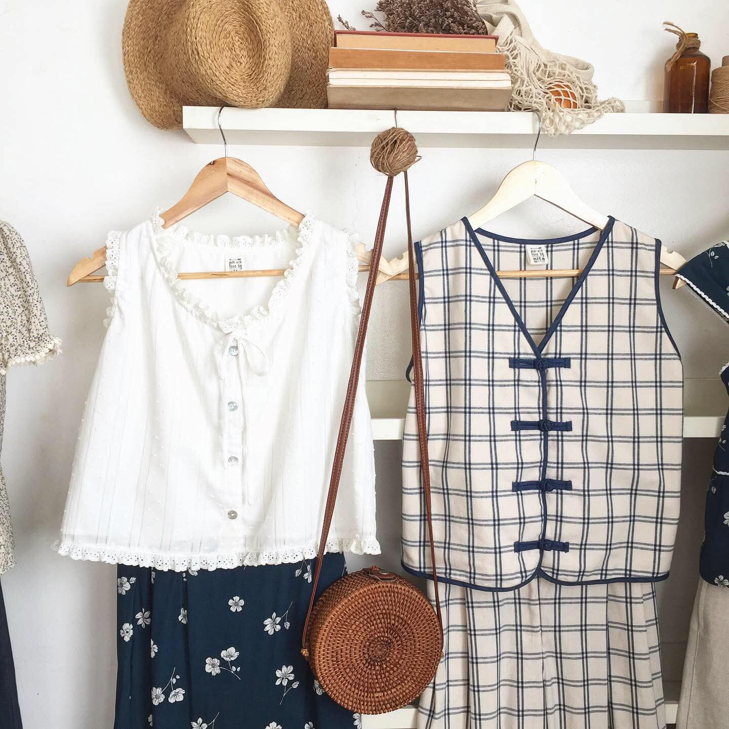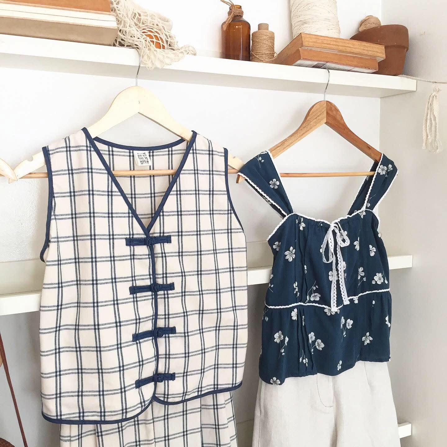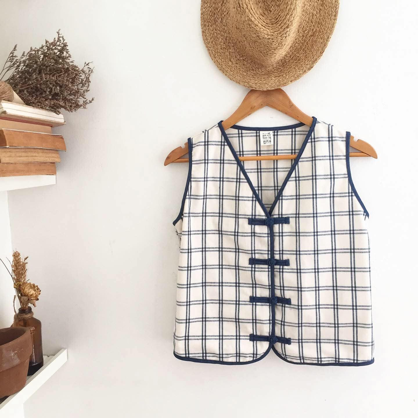 • Cotton in blue / off-white plaid